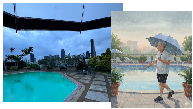 【きょうもバンコクは平和な一日でした】早朝ウォーキングは傘をさして一時間☔