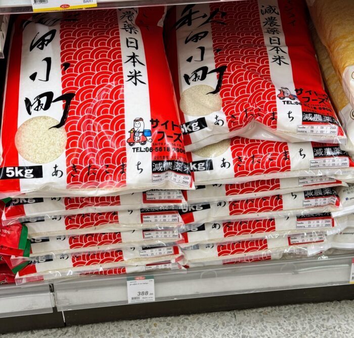今日買った日本米は、388バーツ(x 4.6 = 1,800円)でした。