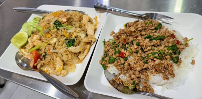 ランチは、ペットショップ横のフードコートで、カオパットとガパオを食べました。
