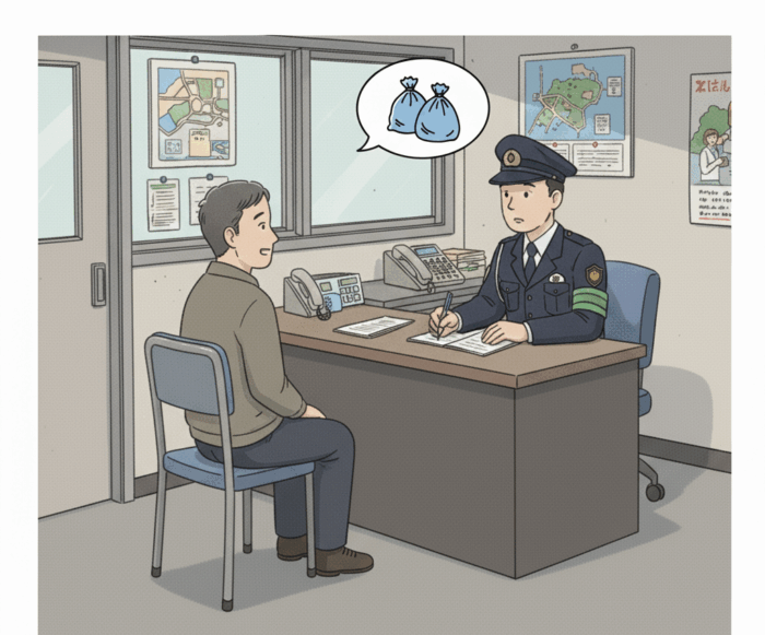 こういった不法投棄は誰に相談すればよいか分からなかったので、とりあえず近くの交番に行ってみました。