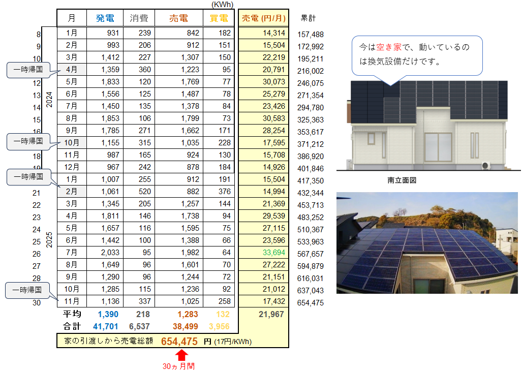 • 2023年6月から2025年11月30日までの30ヵ月間の総売電額は、