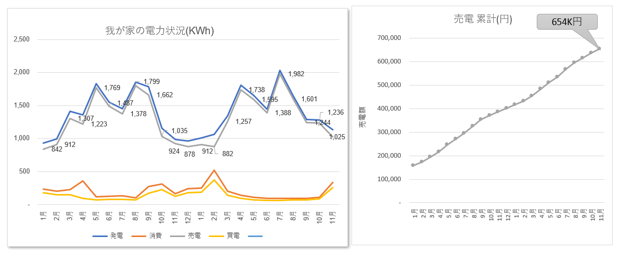 買った電気は差し引かないといけませんが敢えて無視です(笑)