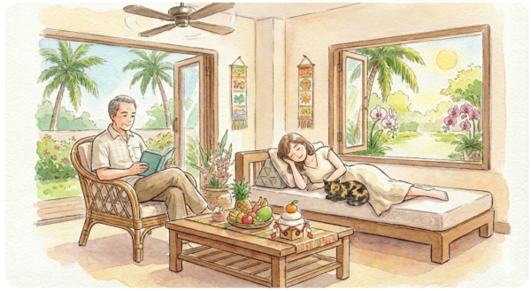 都心のコンドミニアム暮らしとは全く違う、空が広く、水辺があり、緑が多い環境です。中心部への通勤には少し時間がかかりますが、その住環境の良さから、タイ人の富裕層や中間層、そして静かな環境を好む外国人に長く愛されているエリアです。