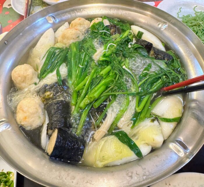 本当は、4人くらいで食べたあとのダシが最高なんですが、夫婦二人の場合は具材が少なくダシの濃さが今一ではあります。
