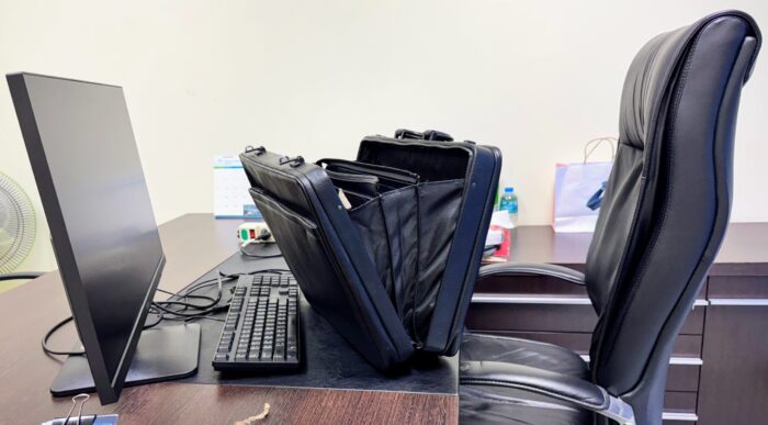 私は、正月休みの断捨離中に見つけた30年前のアタッシュケースを持っての出社でした。