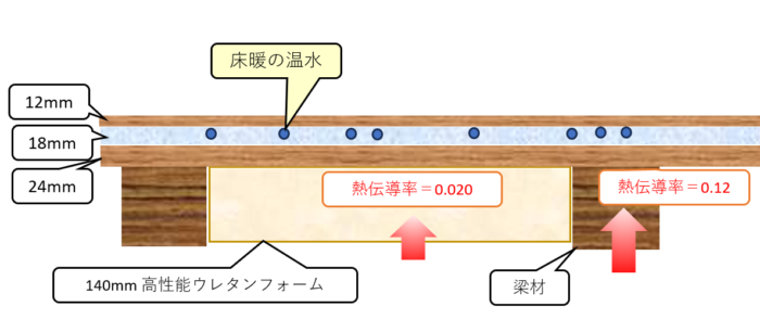 せっかく高性能ウレタンフォームを使っているのに、その間に挟まっている木製の柱や梁が熱を通してしまって断熱性能を落としてないか?と気になりました。