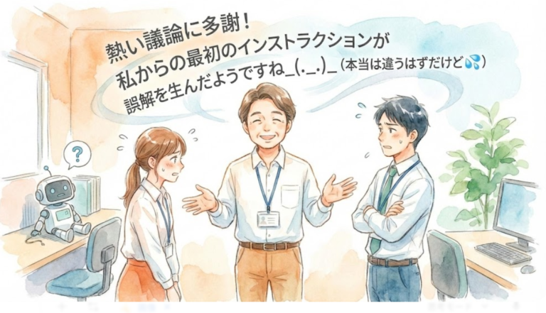 『熱い議論に多謝!私からの最初のインストラクションが誤解を生んだようですね_(._.)_(本当は違うはずだけど💦)』で丸く収まりました。