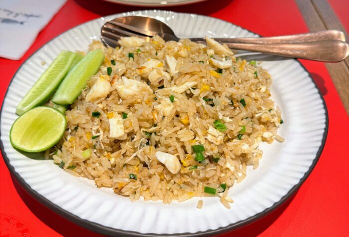 写真はありませんが、これに野菜炒め、デザートなどを足した総額は1,440バーツ(約7,000円)でした。