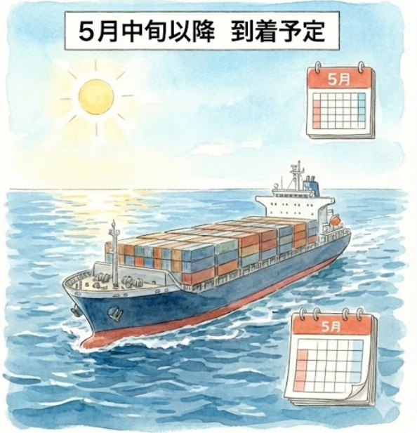 日本の自宅への配送は、5月中旬~下旬頃とのことですので、2ヶ月半ほど掛かることになります。引越しラッシュのシーズンですから仕方ありませんね。