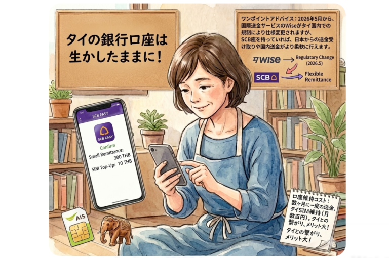 ワンポイントアドバイス:2026年5月から、国際送金サービスのWiseがタイ国内での規制により仕様変更されますが、SCB口座を持っていれば、日本からの送金受け取りや国内送金がより柔軟に行えます。