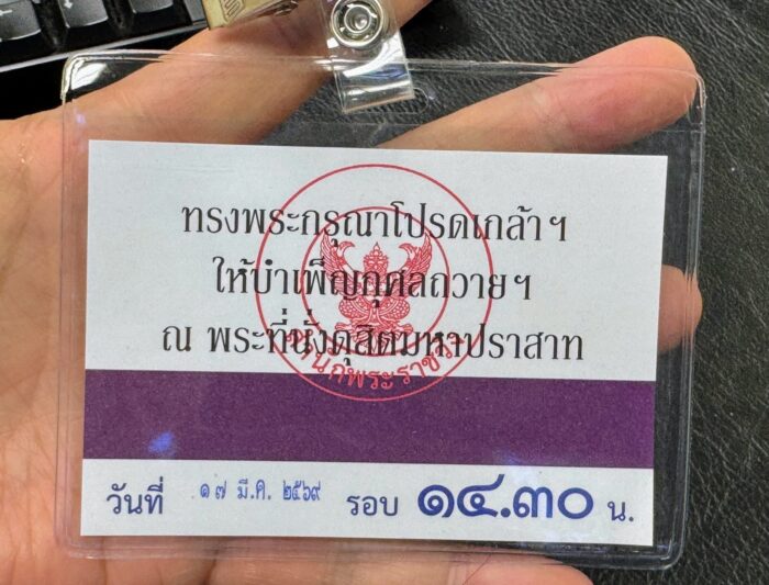 この儀式は、この1年にわたる葬儀・服喪期間の中で、各団体や企業が割り当てられる「功徳の儀式(Merit-Making Ceremony)」の一環で、公式な葬儀工程の中に位置づけられたものです。