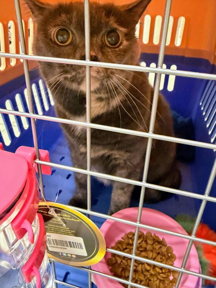 動物検疫所へは、猫はケージに入れて運びます。