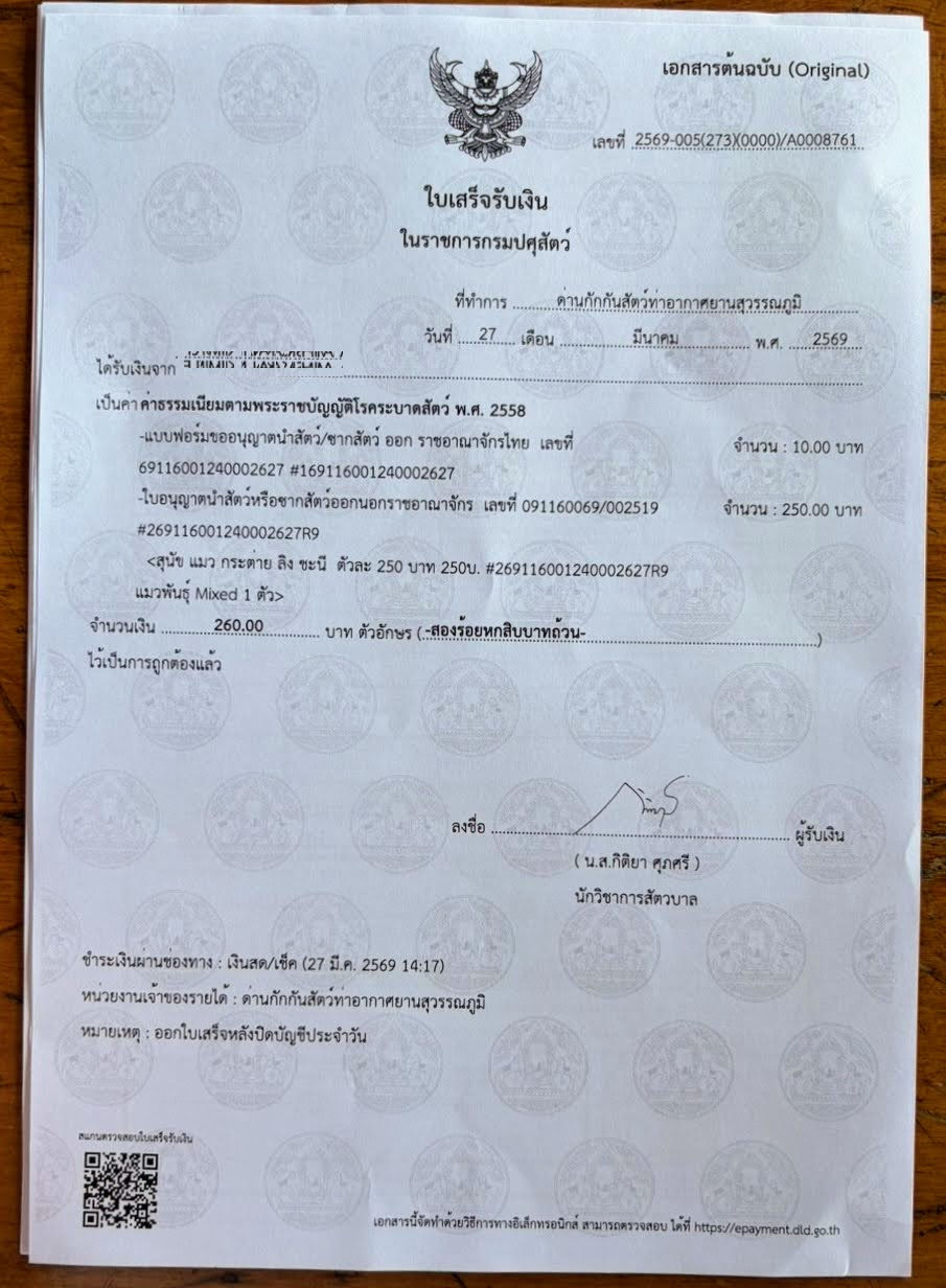 ②タイの検疫当局(DLD)が「この動物は健康であり、感染症の恐れがない」ことを公的に証明するものです。