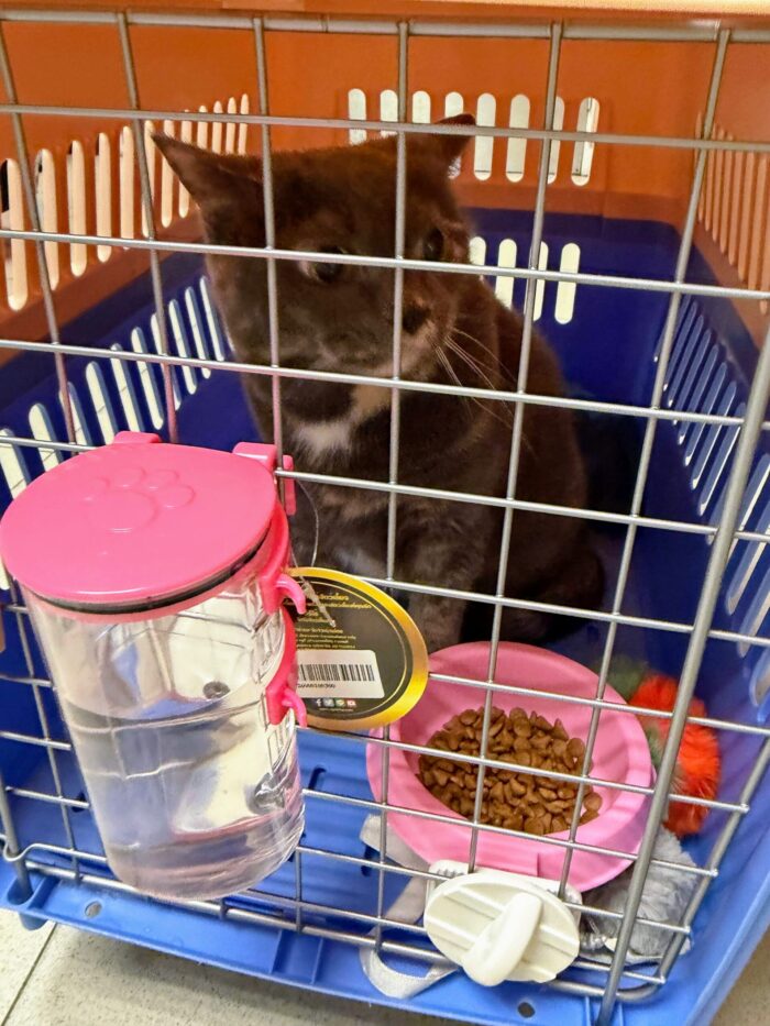 輸送当日は、バンコクのアパートを出て、日本の自宅に着くまで、約13時間30分でした。その間、餌箱のカリカリは全く食べていませんでしたし、おしっこもしていませんでした。また、写真の給水具は、結局のところ、みーこにはその使い方は理解出来ずじまいでした。