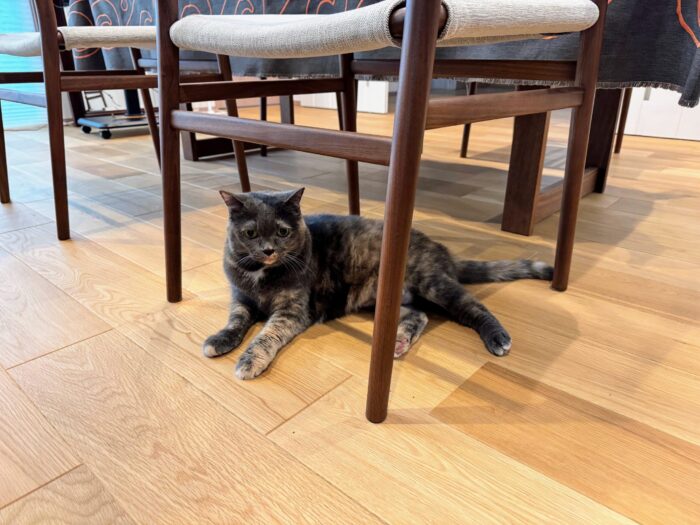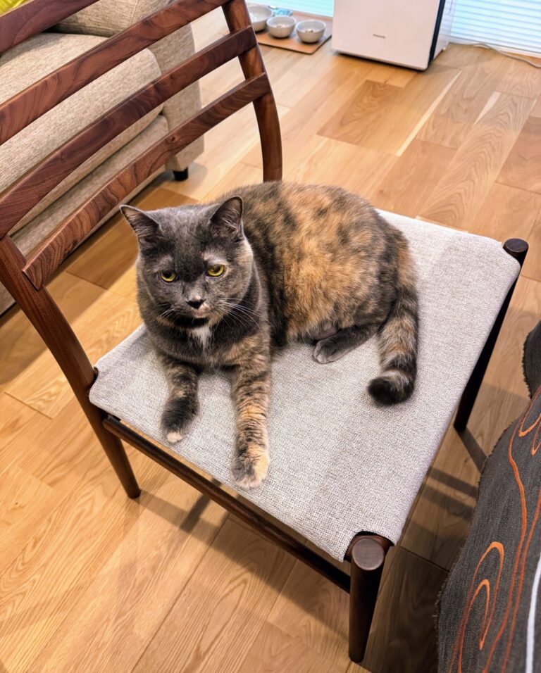 みーこは、タイ生まれの11歳。色が混ぜ混ぜのさび猫の雑種です。