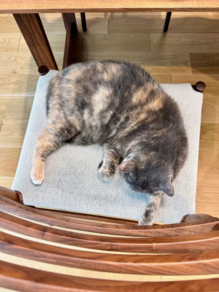 タイで生まれた猫みーこは、ダイニングの椅子がすっかり気に入ったようです。