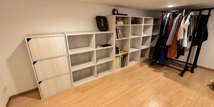 先日、ロフトに本棚と移動式の洋服掛けを置いた記事を投稿しましたが、今日は、扉付きの小さな書類棚も置いてみました。