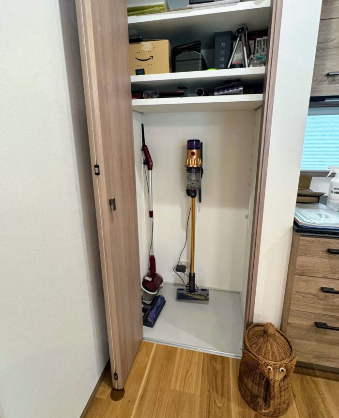 タイから持ち帰った、ダイソン掃除機をキッチンのクローゼットに設置しました。