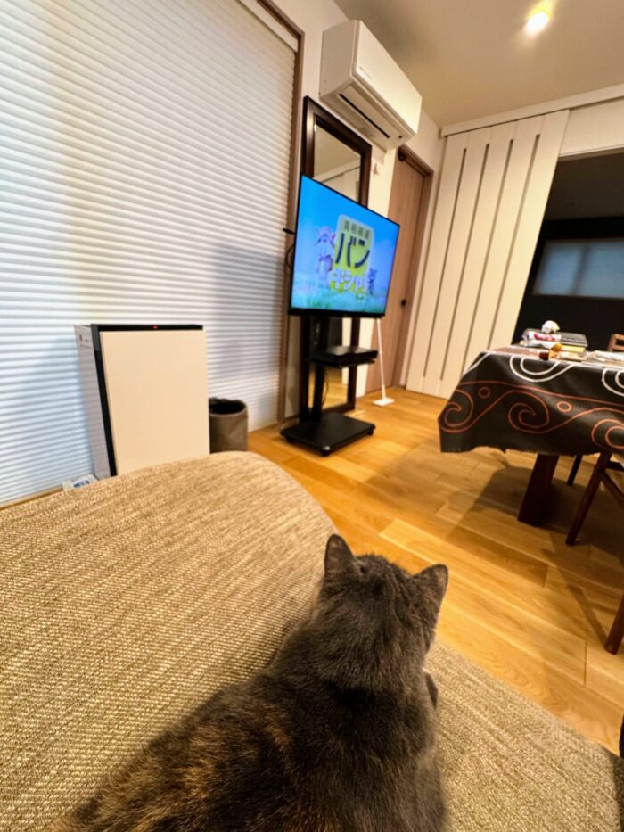 今日はダイニングテーブル横にテレビがありますが、義母のストレッチ運動の際は、奥の8帖の洋間へ移動したりします。